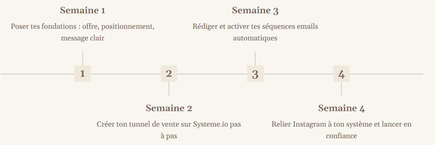 Que tu commences par l'ebook ou la formation, tu fais le premier pas vers un business structuré, serein et aligné avec ta vie.